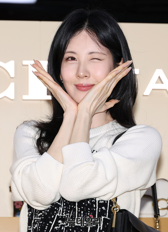 가수 겸 배우 서현이 3일 오전 서울 여의도 더현대 서울에서 열린 럭셔리 브랜드 코치(COACH) 스프링 태비샵 팝업 오픈 기념 포토월에서 포즈를 취하고 있다.