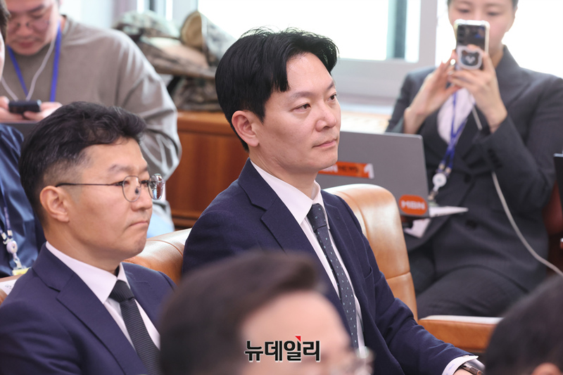박상용 인천지검 부부장검사가 3일 국회에서 열린 윤석열 정권 정치검찰 조작기소 의혹사건 진상규명 국정조사 특별위원회 전체회의에서 참석해 앉아 있다.