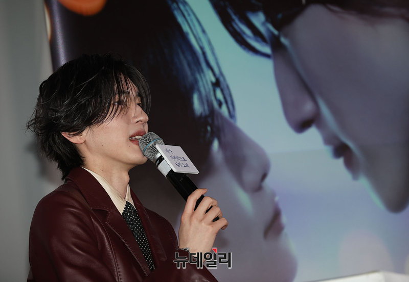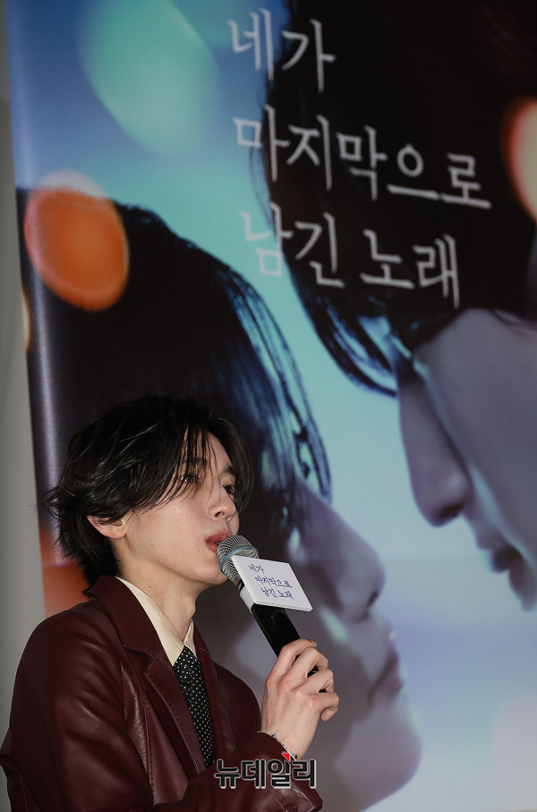 일본 배우 미치에다 슌스케가 3일 오후 서울 CGV 용산아이파크몰에서 열린 영화 '네가 마지막으로 남긴 노래(감독 미키 다카히로)' 내한 기자간담회에 참석해 자리하고 있다.