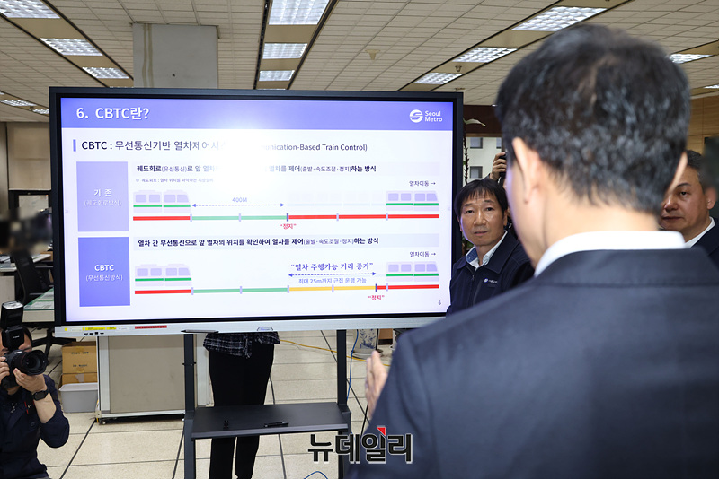 [포토] '무선통신 기반 열차제어시스템(CBTC)' 설명듣는 오세훈