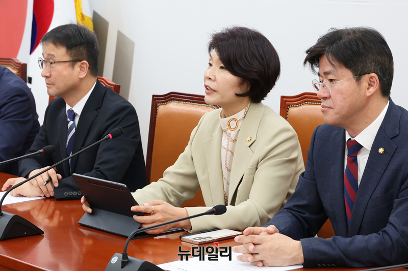 한정애 더불어민주당 정책위의장이 7일 오전 국회에서 열린 원내대책회의에서 모두발언을 하고 있다.