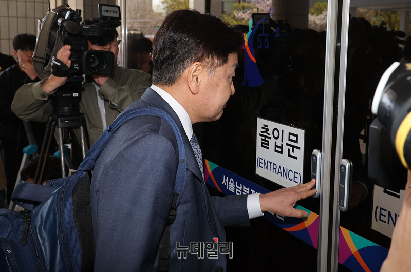 더불어민주당의 제명 처분에 불북한 김관영 전북지사가 7일 오후 서울 양천구 서울남부지법에서 열린 제명 처분 효력정지 가처분 심문에 출석하고 있다.