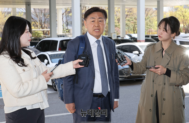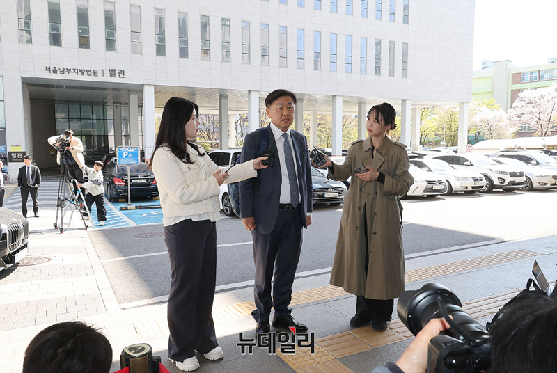 더불어민주당의 제명 처분에 불북한 김관영 전북지사가 7일 오후 서울 양천구 서울남부지법에서 열린 제명 처분 효력정지 가처분 심문에 출석하며 입장을 밝히고 있다.