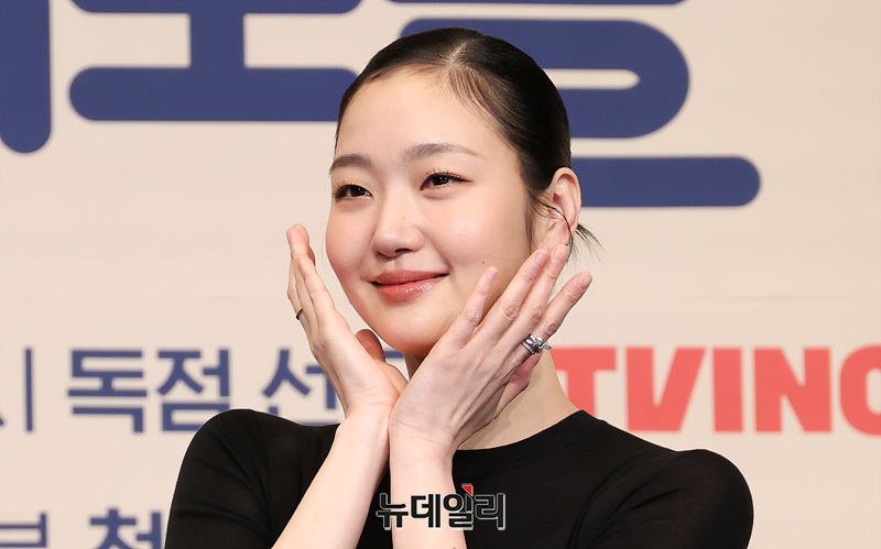 배우 김고은이 7일 오후 서울 구로구 더링크 호텔에서 열린 티빙 오리지널 시리즈 '유미의 세포들 시즌3' 제작발표회에서 포즈를 취하고 있다.