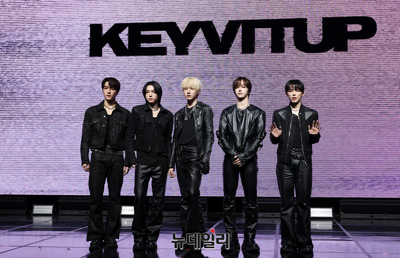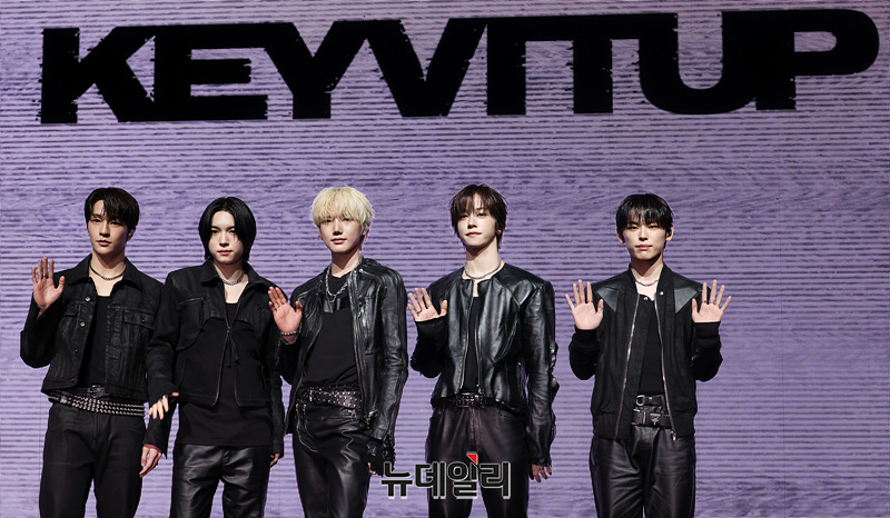 5인조 보이그룹 키빗업(KEYVITUP)이 8일 오후 서울 마포구 NOL씨어터 합정 동양생명홀에서 열린 첫 EP 앨범 '키빗업(KEYVITUP)' 발매 기념 미디어 쇼케이스에서 포즈를 취하고 있다.