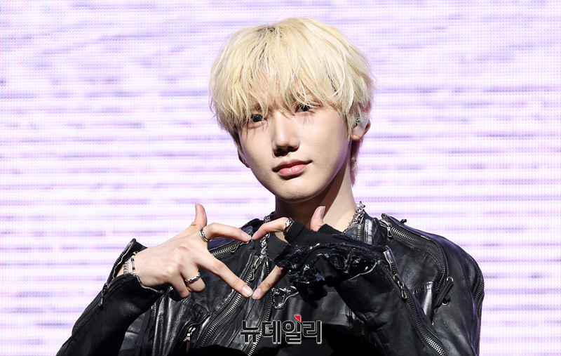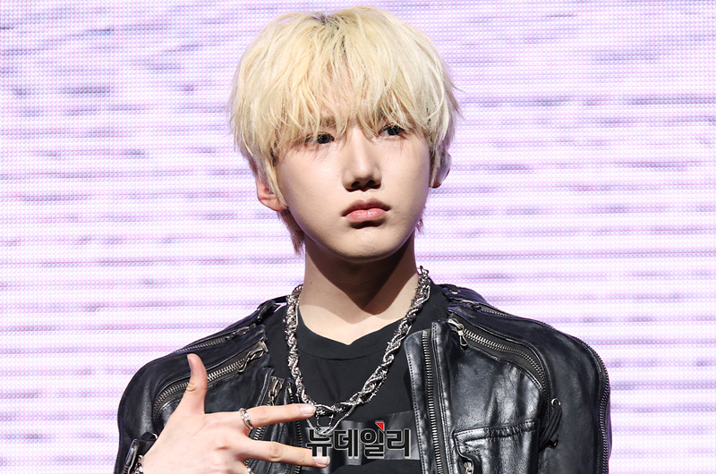 5인조 보이그룹 키빗업(KEYVITUP) 현민이 8일 오후 서울 마포구 NOL씨어터 합정 동양생명홀에서 열린 첫 EP 앨범 '키빗업(KEYVITUP)' 발매 기념 미디어 쇼케이스에서 포즈를 취하고 있다.