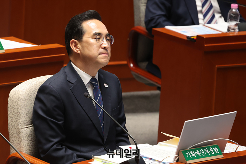 박홍근 기획예산처 장관이 8일 국회에서 열린 예산결산특별위원회 전체회의에서 의원 질의를 듣고 있다.