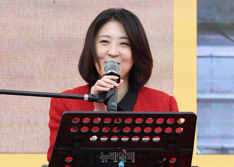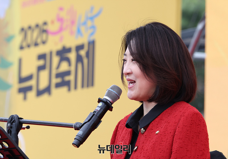 최보윤 국민의힘 의원이 9일 오전 서울 여의도 광장에서 열린 2026 동행서울 누리축제에서 축사를 하고 있다.