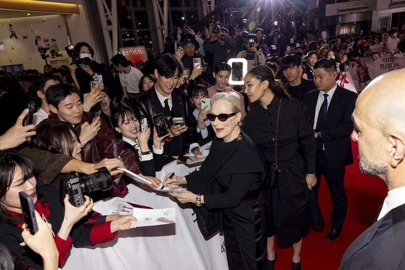 메릴 스트립과 앤 해서웨이는 음악에 맞춰 자연스럽게 몸을 움직이며 팬들의 열기에 화답했고, 여유로운 제스처와 밝은 표정으로 현장 분위기를 주도했다. 특히 팬들과 가까이서 눈을 맞추고 인사를 나누는 등 적극적인 소통으로 깊은 인상을 남겼다.