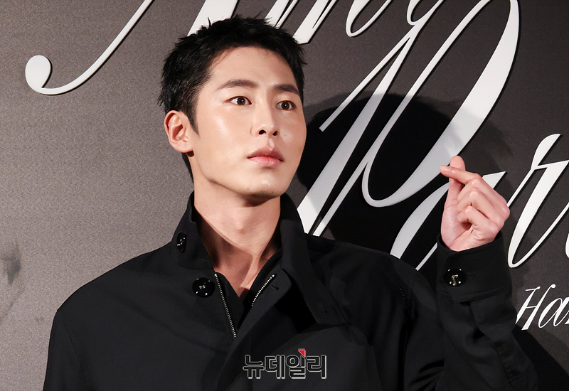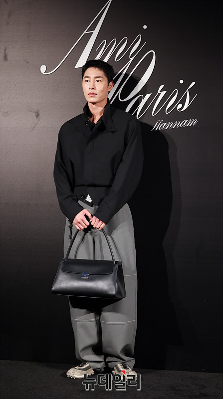 배우 이재욱이 9일 오후 서울 용산구 아미 파리(AMI PARIS) 한남 플래그십 스토어에서 열린 오픈 기념 포토월에서 포즈를 취하고 있다.