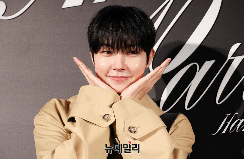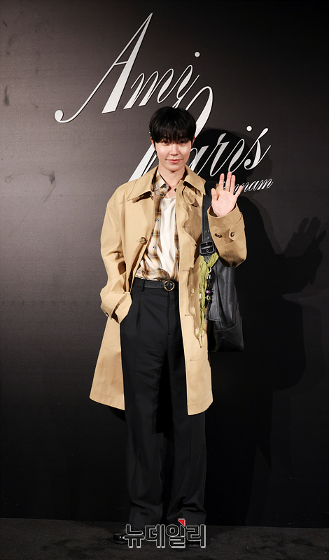 배우 황인엽이 9일 오후 서울 용산구 아미 파리(AMI PARIS) 한남 플래그십 스토어에서 열린 오픈 기념 포토월에서 포즈를 취하고 있다.