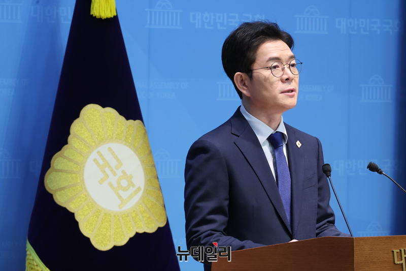 정원오 더불어민주당 서울시장 후보가 10일 오전 국회 소통관에서 기자회견을 열고 발언하고 있다.