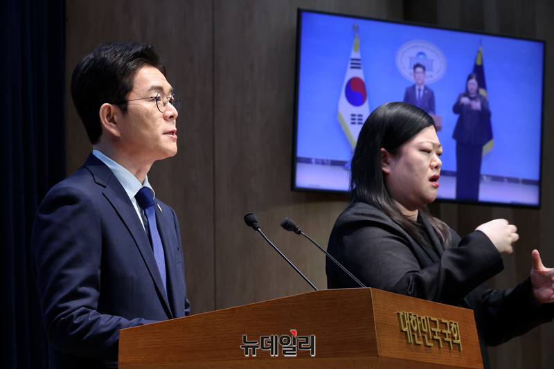정원오 더불어민주당 서울시장 후보가 10일 오전 국회 소통관에서 기자회견을 열고 발언하고 있다.