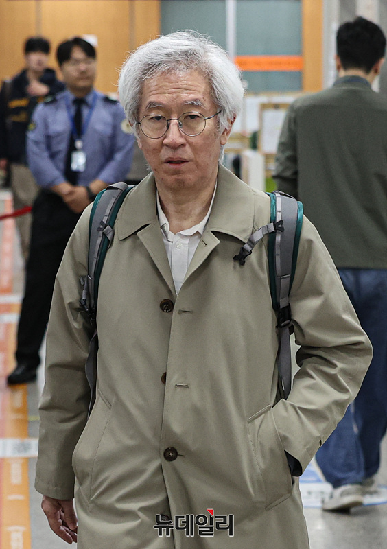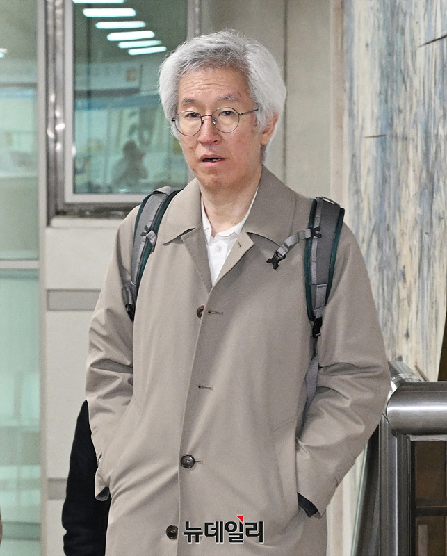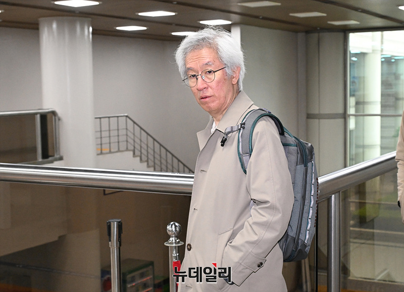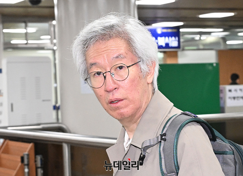 김용진 전 뉴스타파 대표가 10일 서울 서초구 서울중앙지방법원에서 열린 윤석열 명예훼손 허위보도 의혹 관련 재판에 출석하고 있다.
