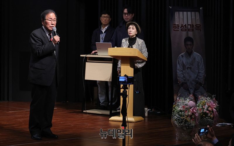 원로배우 임동진 씨가 10일 오후 서울 서초구 흰물결아트센터에서 열린 영화 한성감옥(가제) 제작발표회에서 인사말을 하고 있다.