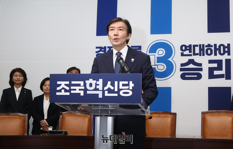 조국 조국혁신당 대표가 14일 오전 국회에서 경기 평택을 국회의원 재보궐 선거 출마선언을 하고 있다.