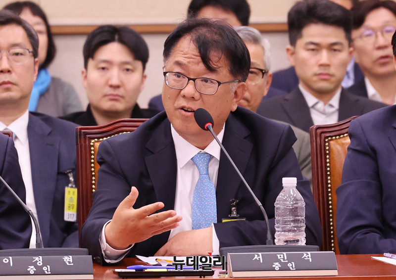서민석 변호사가 14일 국회 윤석열정권정치검찰조작기소의혹사건진상규명국정조사특별위원회에서 열린 쌍방울 대북송금 조작기소 의혹 사건 청문회에서 의원들의 질의에 답변하고 있다.