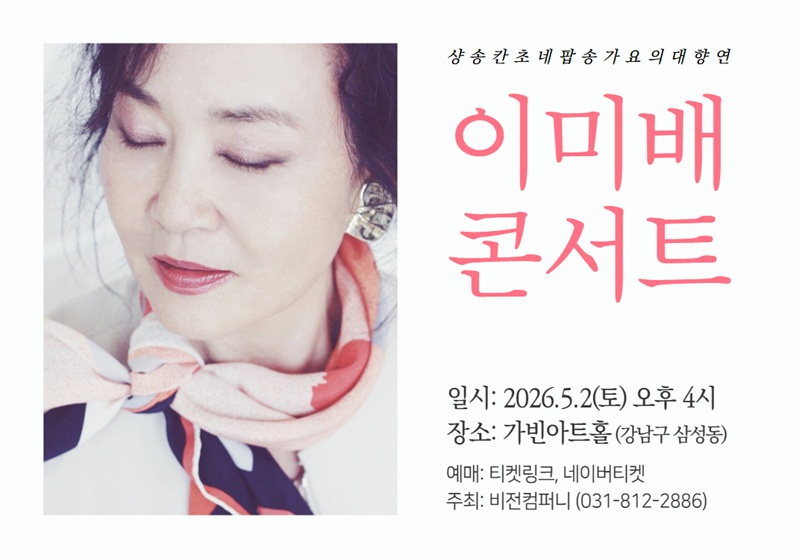 이미배는 오는 5월 2일 오후 4시, 서울 강남구 삼성동 가빈아트홀에서 단독 콘서트를 열고 관객들과 만날 예정이다. 오랜 기다림 끝에 마련된 자리인 만큼, 무대에 대한 기대감도 높아지고 있다.