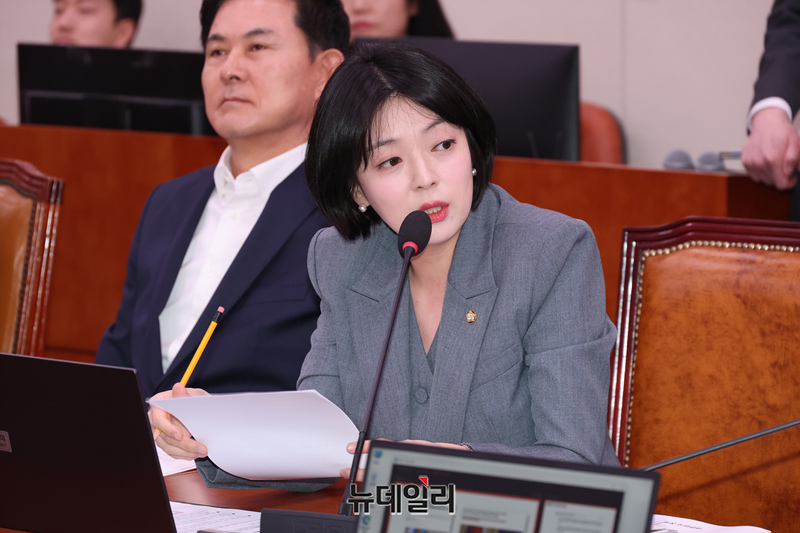 배현진 국민의힘 의원이 15일 오전 국회에서 열린 외교통일위원회 전체회의에서 질의를 하고 있다.