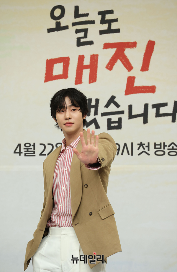 배우 안효섭이 15일 오후 서울 양천구 SBS에서 열린 새 수목드라마 '오늘도 매진했습니다(극본 진승희, 연출 안종연)' 제작발표회에서 포즈를 취하고 있다.'오늘도 매진했습니다'는 회색 도시와 초록빛 시골, 두 공간적 배경으로 완벽주의 농부 매튜 리(aka 메추리)와 완판주의 쇼호스트 담예진이 밤낮없이 얽히며 펼치는 직배송 제철 로맨스 드라마다.배우 안효섭, 채원빈, 김범 등이 출연한다. 4월 22일 첫 방송으로 매주 수, 목 밤 9시 방송된다.
