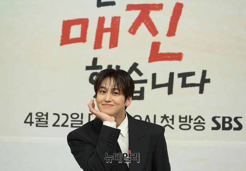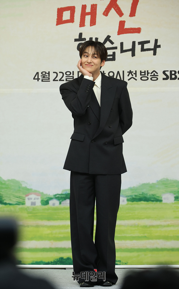 배우 김범이 15일 오후 서울 양천구 SBS에서 열린 새 수목드라마 '오늘도 매진했습니다(극본 진승희, 연출 안종연)' 제작발표회에서 포즈를 취하고 있다.'오늘도 매진했습니다'는 회색 도시와 초록빛 시골, 두 공간적 배경으로 완벽주의 농부 매튜 리(aka 메추리)와 완판주의 쇼호스트 담예진이 밤낮없이 얽히며 펼치는 직배송 제철 로맨스 드라마다.배우 안효섭, 채원빈, 김범 등이 출연한다. 4월 22일 첫 방송으로 매주 수, 목 밤 9시 방송된다.