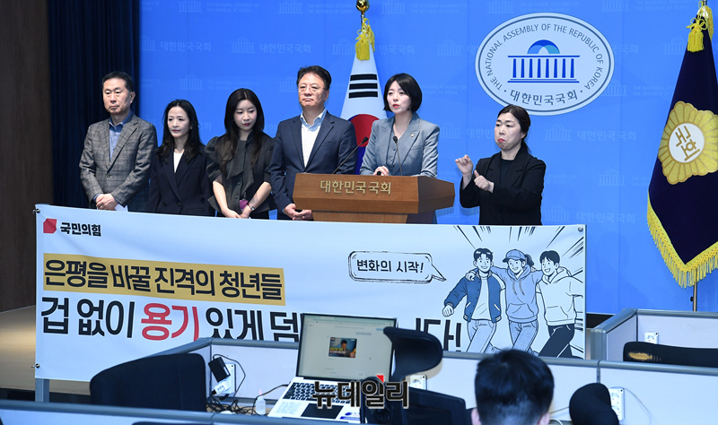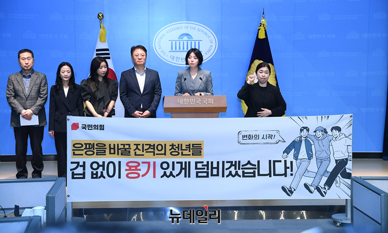 배현진 국민의힘 서울시당위원장 겸 공천관리위원장이 15일 오후 국회 소통관에서 은평구를 청년 특구로 지정하고 청년 후보를 공천하는 내용을 골자로 하는 기자회견을 하고 있다.