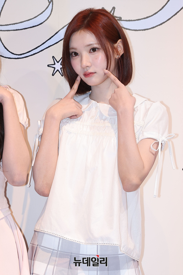 걸그룹 하츠투하츠 지우가 16일 오전 서울 성동구 성수LECT에서 열린 메이크업 브랜드 투에이엔 팝업 오픈행사에서 포즈를 취하고 있다.