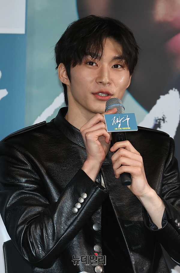 배우 조범규가 16일 오후 서울 CGV용산아이파크몰에서 열린 '짱구(연출 정우 오성호)' 언론시사회에서 인사말을 하고 있다.