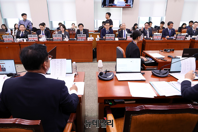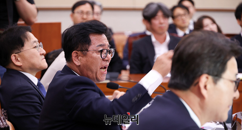 이상휘 국민의힘 의원과 박선원 더불어민주당 의원이 16일 오후 국회에서 열린 윤석열 정권 정치검찰 조작기소 의혹 사건 진상규명 국정조사특별위원회에서 언쟁을 벌이고 있다.