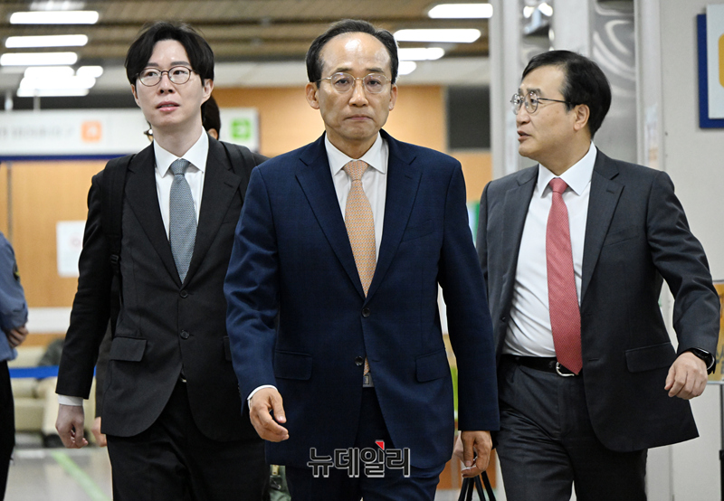 [포토] 계엄해제 표결 방해 혐의로 법원 출석하는 추경호 전 원내대표