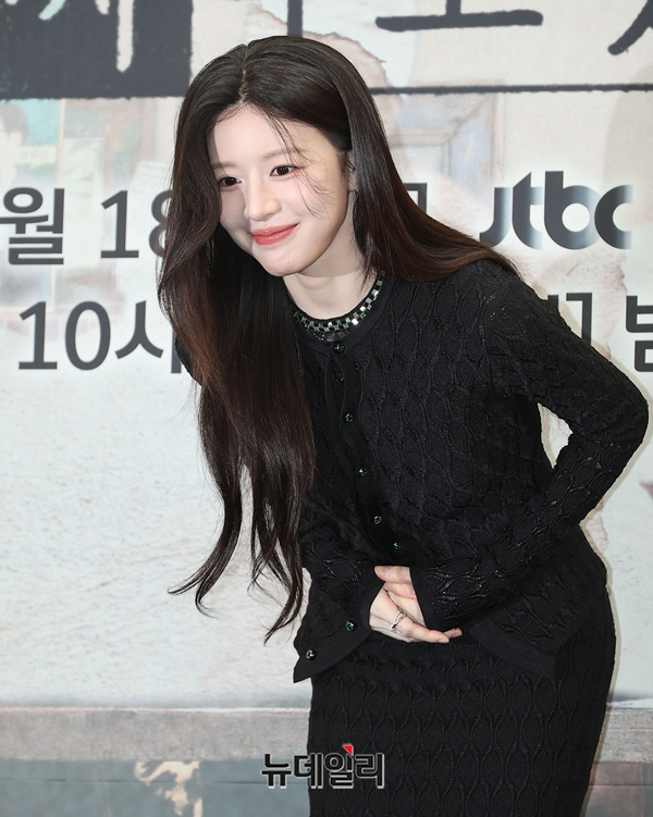 배우 고윤정이 17일 오후 서울 마포구 스탠포드호텔에서 열린 JTBC 새토일드라마 '모두가 자신의 무가치함과 싸우고 있다(연출 차영훈, 극본 박해영)' 제작발표회에서 포즈를 취하고 있다.드라마는 '우리는 왜 절대 사라지지 않을 것처럼 이렇게 힘들게 살고 있는 걸까?'라는 근원적인 질문에서 시작해 '당신은 이미 충분히 가치 있다'는 응원의 메시지를 전하는 드라마다.배우 구교환, 고윤정, 오정세, 강말금, 박해준, 한선화 등이 출연한다. 18일 첫 방송으로 매주 토, 일 밤 방송된다.