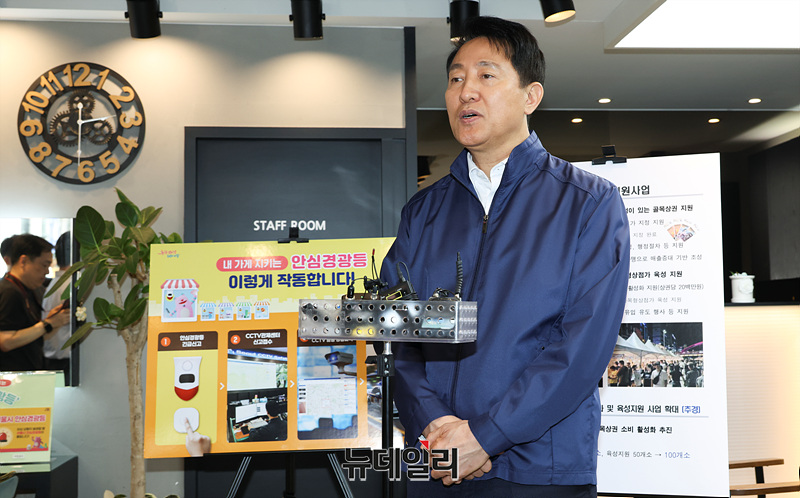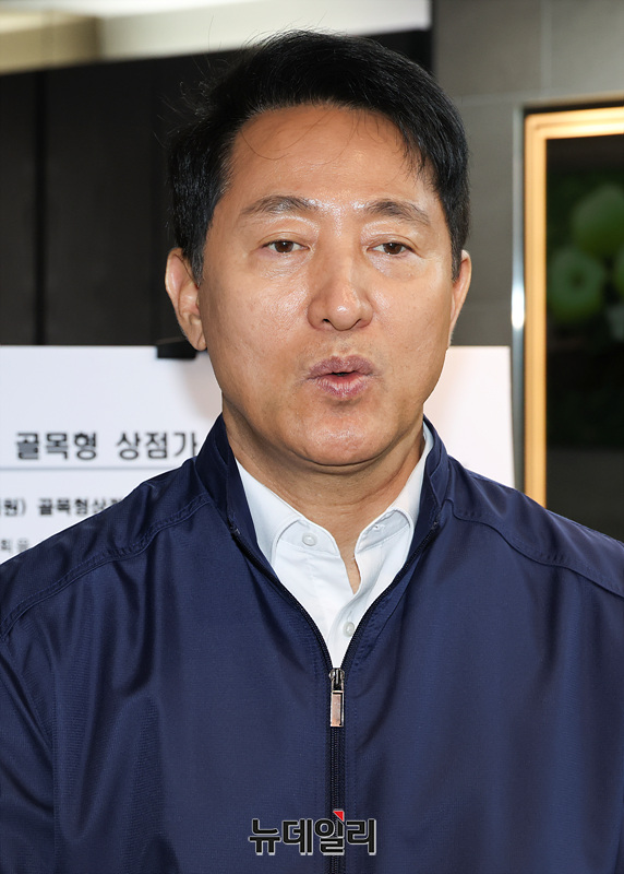 오세훈 서울시장이 17일 오후 서울 관악구 관악뷰티거리 골목상권 민생현장방문에서 발언하고 있다.