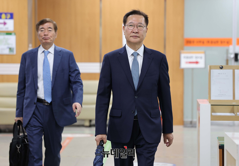 박성재 전 법무부 장관이 20일 서울 서초구 서울중앙지법에서 열린 내란중요임무종사자 등 계엄 가담 의혹 공판에 출석하고 있다.