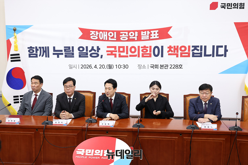 장동혁 국민의힘 대표가 20일 오전 서울 여의도 국회에서 장애인의 날 공약발표에 앞서 모두발언을 하고 있다.