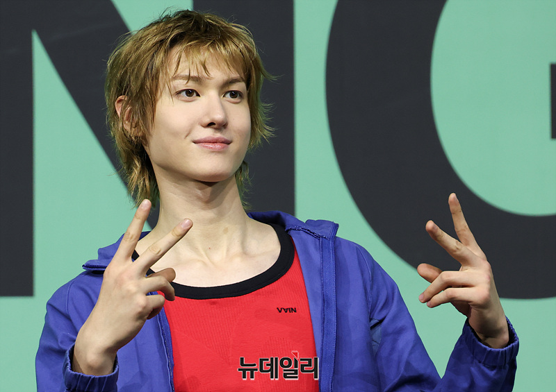그룹 코르티스(CORTIS) 마틴이 20일 오후 서울 광진구 예스24 라이브홀에서 열린 미니 2집 '그린그린(GREENGREEN)'의 타이틀곡 '레드레드(REDRED)' 발표 기념 쇼케이스에서 포즈를 취하고 있다.