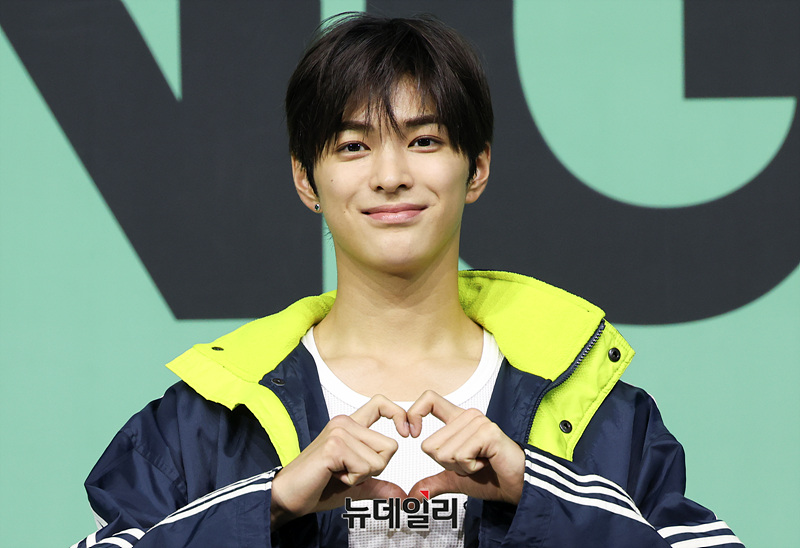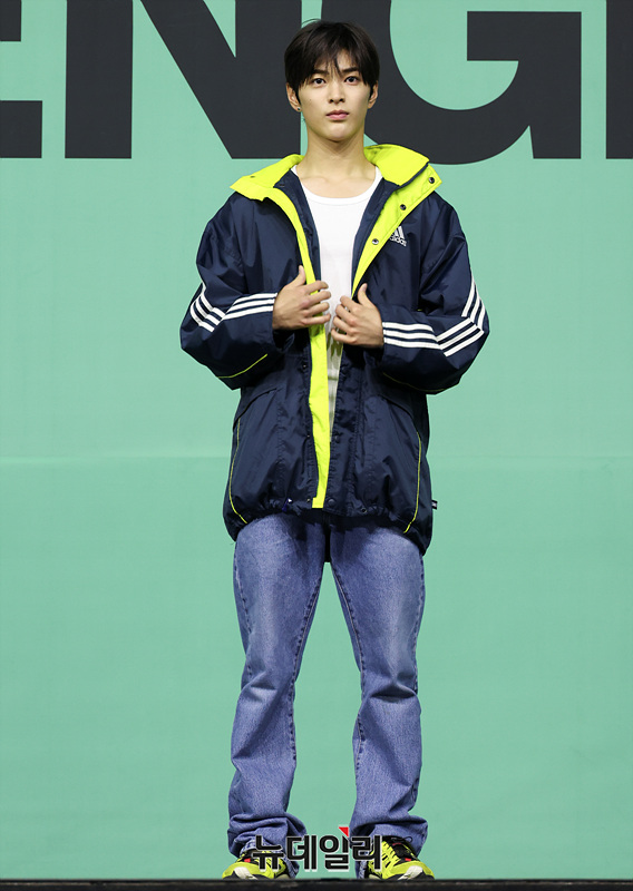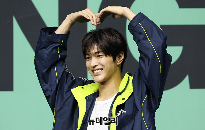 그룹 코르티스(CORTIS) 건호가 20일 오후 서울 광진구 예스24 라이브홀에서 열린 미니 2집 '그린그린(GREENGREEN)'의 타이틀곡 '레드레드(REDRED)' 발표 기념 쇼케이스에서 포즈를 취하고 있다.
