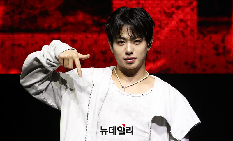 그룹 이븐(EVNNE) 케이타가 20일 오후 서울 영등포구 명화라이브홀에서 열린 첫 번째 싱글 앨범 '뱉어(Backtalk)' 쇼케이스에서 포즈를 취하고 있다.