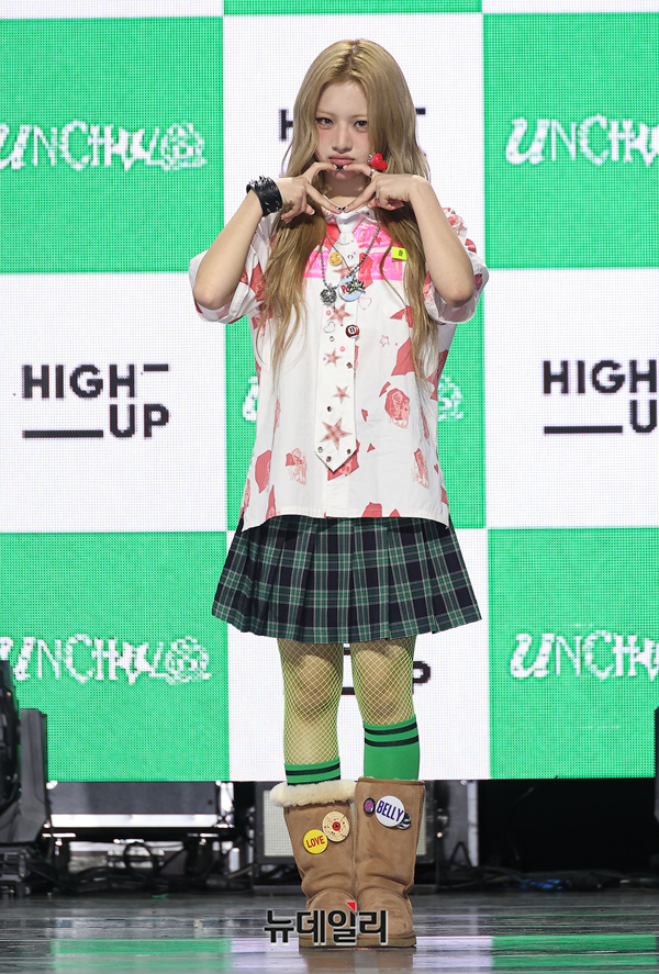 6인조 신인걸그룹 UNCHILD(언차일드 : 박예은 히키 티나 아코 이본 나하은) 멤버 나하은이 21일 오후 서울 용산구 블루스퀘어에서 열린 데뷔 싱글앨범 쇼케이스에서 포즈를 취하고 있다.