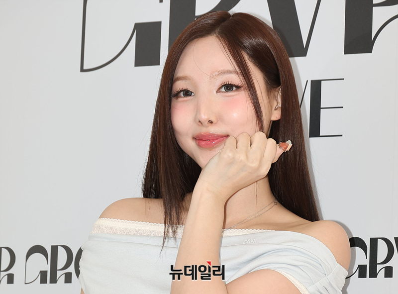 브랜드 앰버서더 트와이스 나연이 21일 오후 서울 강남구 그로브 압구정 스토어에서 열린 'Wear Yourself' 캠페인에 방문해 포즈를 취하고 있다.