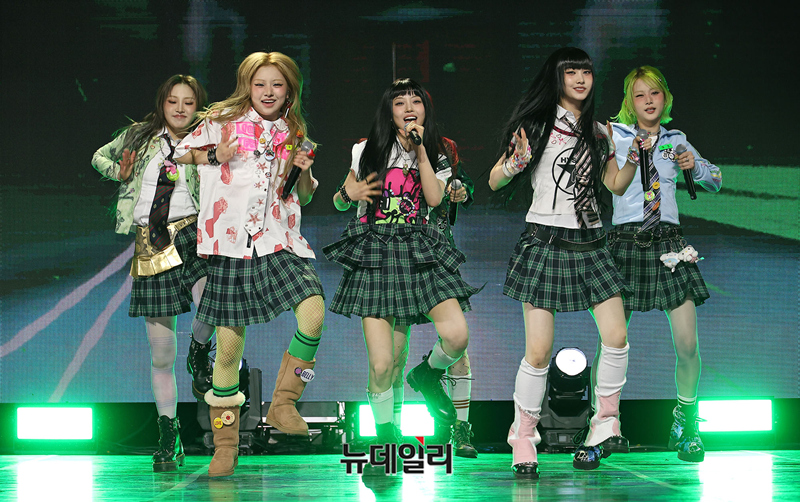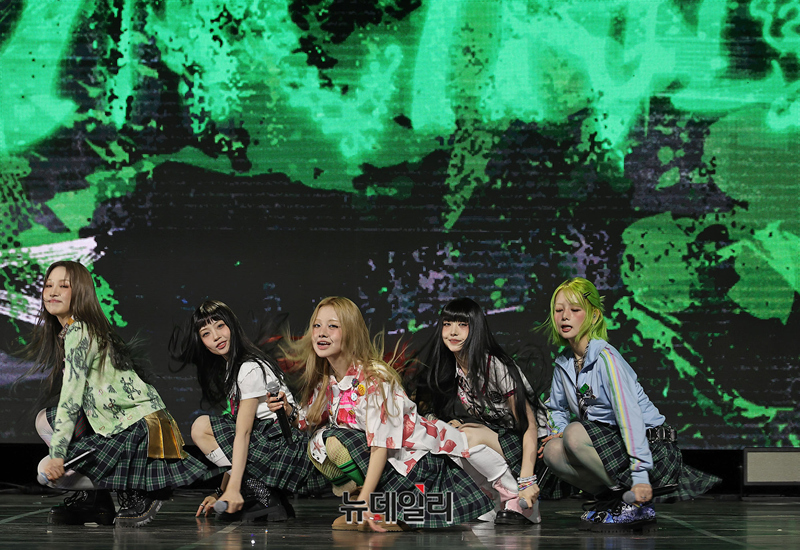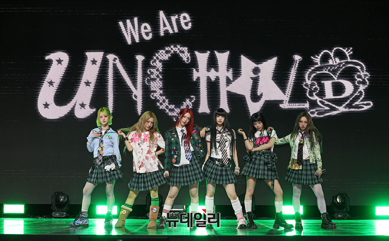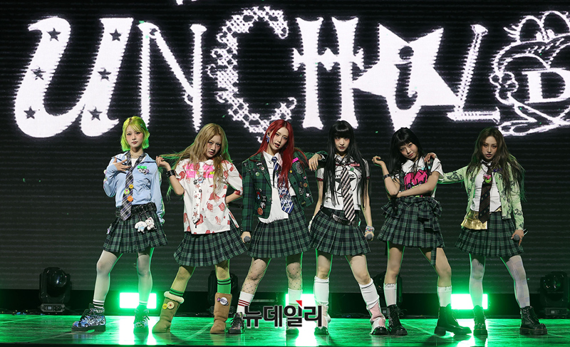 6인조 신인걸그룹 UNCHILD(언차일드 : 박예은 히키 티나 아코 이본 나하은)가 21일 오후 서울 용산구 블루스퀘어에서 열린 데뷔 싱글앨범 쇼케이스에서 타이틀곡 무대를 선보이고 있다.