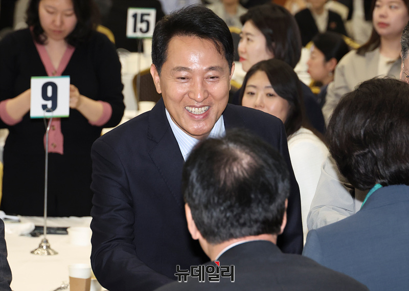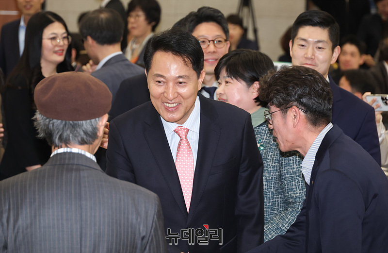 오세훈 서울시장이 22일 오후 서울 용산구 백범 김구 기념관에서 열린 서울시 사회복지사협회 창립 40주년 행사에서 인사를 하고 있다.