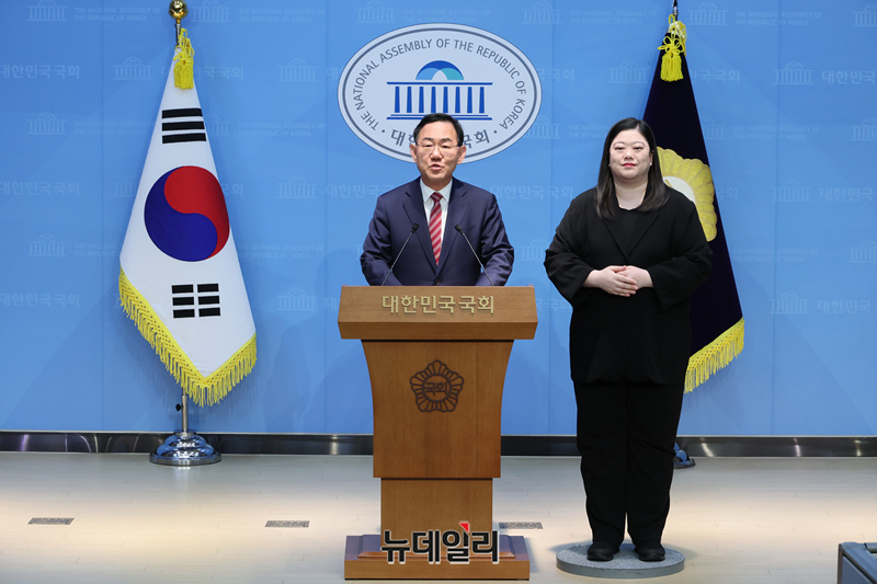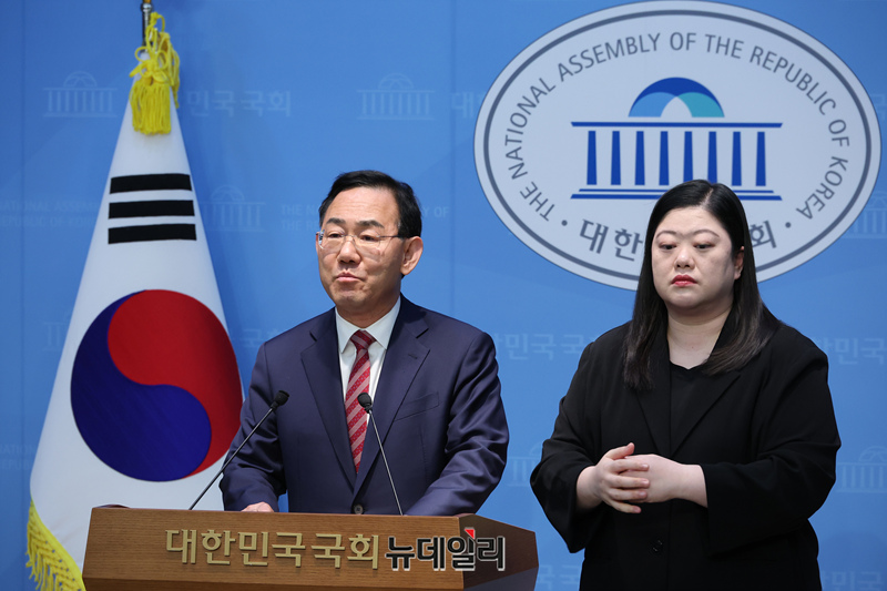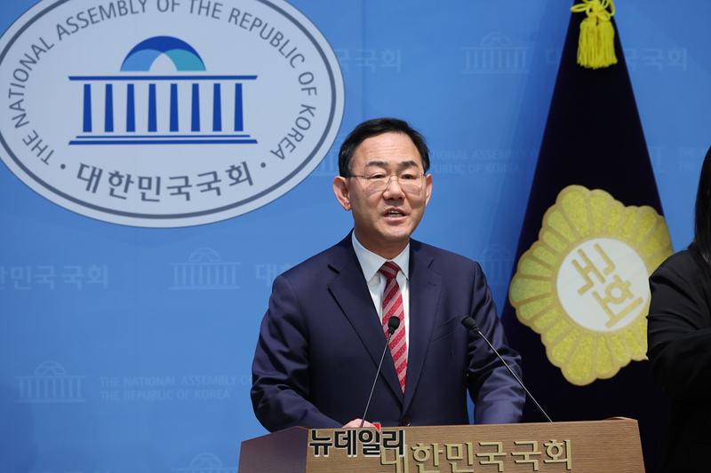 주호영 국민의힘 의원이 23일 오후 국회 소통관에서 기자회견을 갖고 6·3 지방선거 대구시장 선거에 출마하지 않겠다는 입장을 밝히고 있다.
