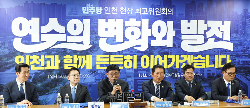 고남석 인천시당위원장이 24일 오전 인천 연수구 정지열 연수구청장 후보 선거사무실에서 열린 더불어민주당 현장 최고위원회의에서 발언을 하고 있다. (인천=서성진 기자)