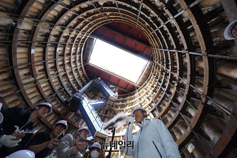 [포토] 지하18m 빗물터널 공사현장 점검 나선 오세훈 서울시장