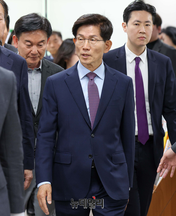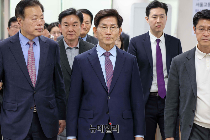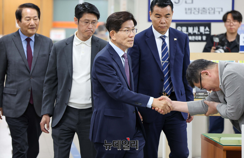 김문수 전 국민의힘 대선후보가 24일 서울 서초구 서울중앙지방법원에서 열린 제21대 대통령선거 선거법 위반 1심 선고 공판에 출석하고 있다.