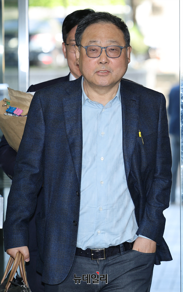 김건희 여사에게 시가 3,990만 원 상당의 명품 시계를 전달한 혐의를 받는 드론업체 대표 서성빈 씨가 24일 오전 서울 서초구 서울중앙지법에서 열린 공판에 출석하고 있다.