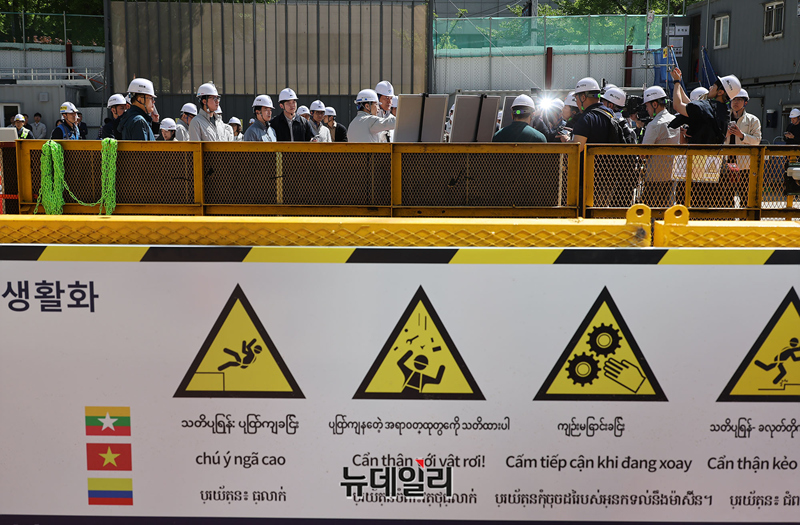 오세훈 서울시장이 24일 오전 서울 종로구 광화문 대심도 빗물배수터널 지하 공사현장을 찾아 공사 추진 현황을 보고 받고 있다.