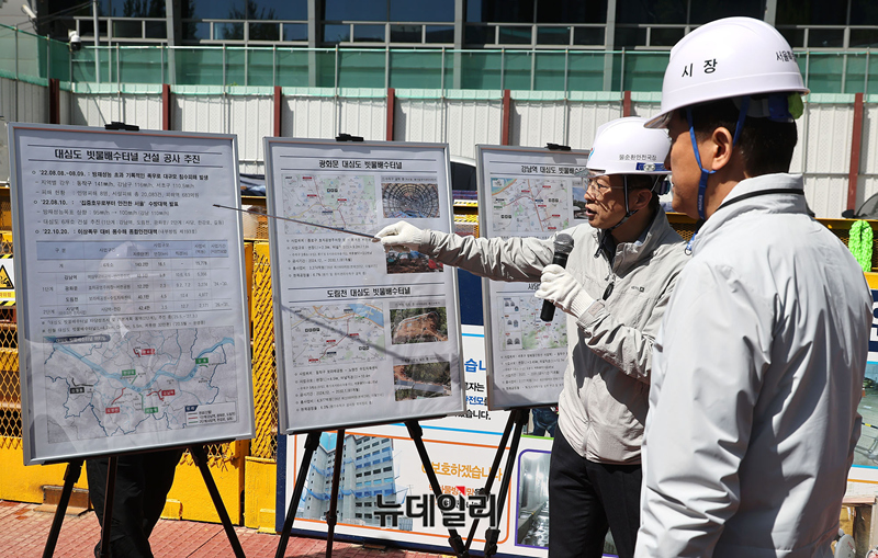 [포토] 빗물배수터널 공사현황 보고 받는 오세훈 서울시장