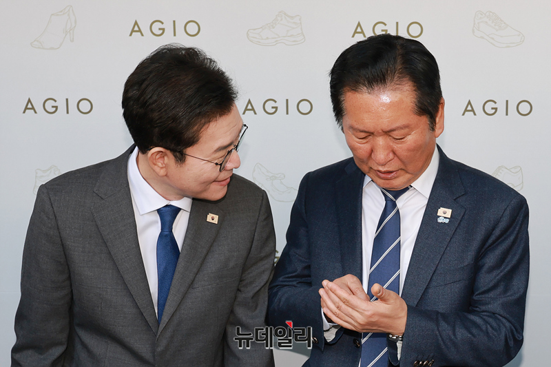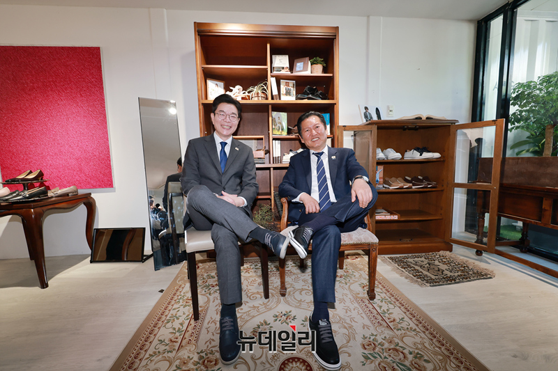 [포토] 아지오 구두 신은 정청래 민주당 대표-정원오 서울시장 후보
