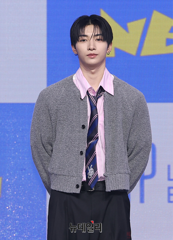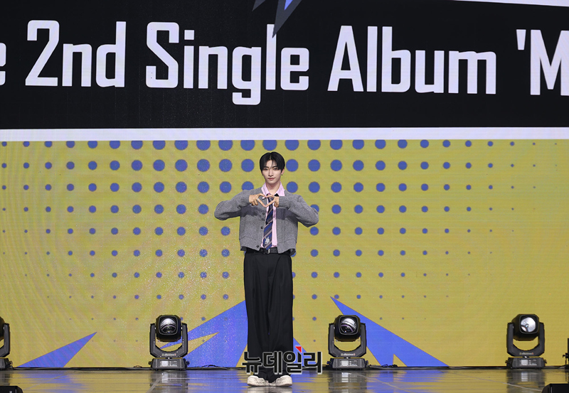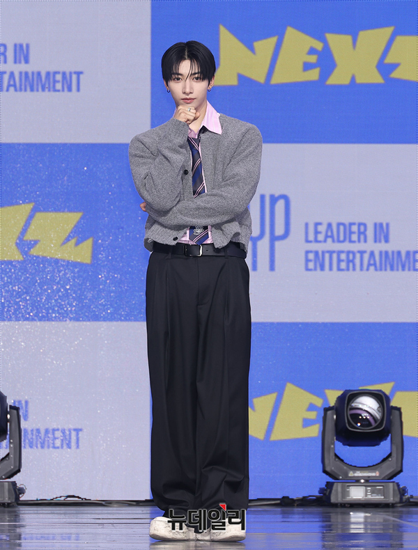 그룹 NEXZ가 유우가 27일 오후 서울 용산구 블루스퀘어에서 열린 싱글 2집 'Mmchk(음츠크)' 쇼케이스에서 포즈를 취하고 있다 .